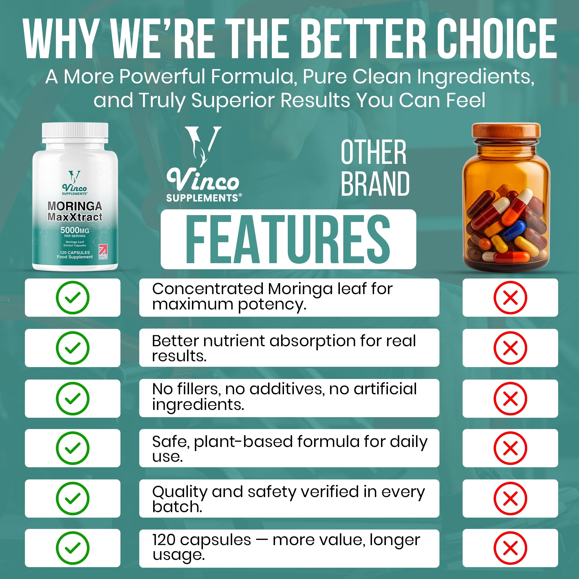 • Absolutely Pure Ingredients - Free from unnecessary additives, fillers, or binders that dilute effectiveness. Every capsule is 100% vegan, non-GMO, and gluten-free. This clean formulation means you receive only the beneficial Moringa compounds your body can actually use.