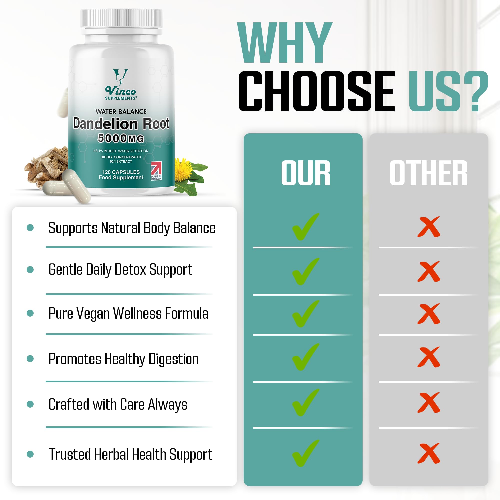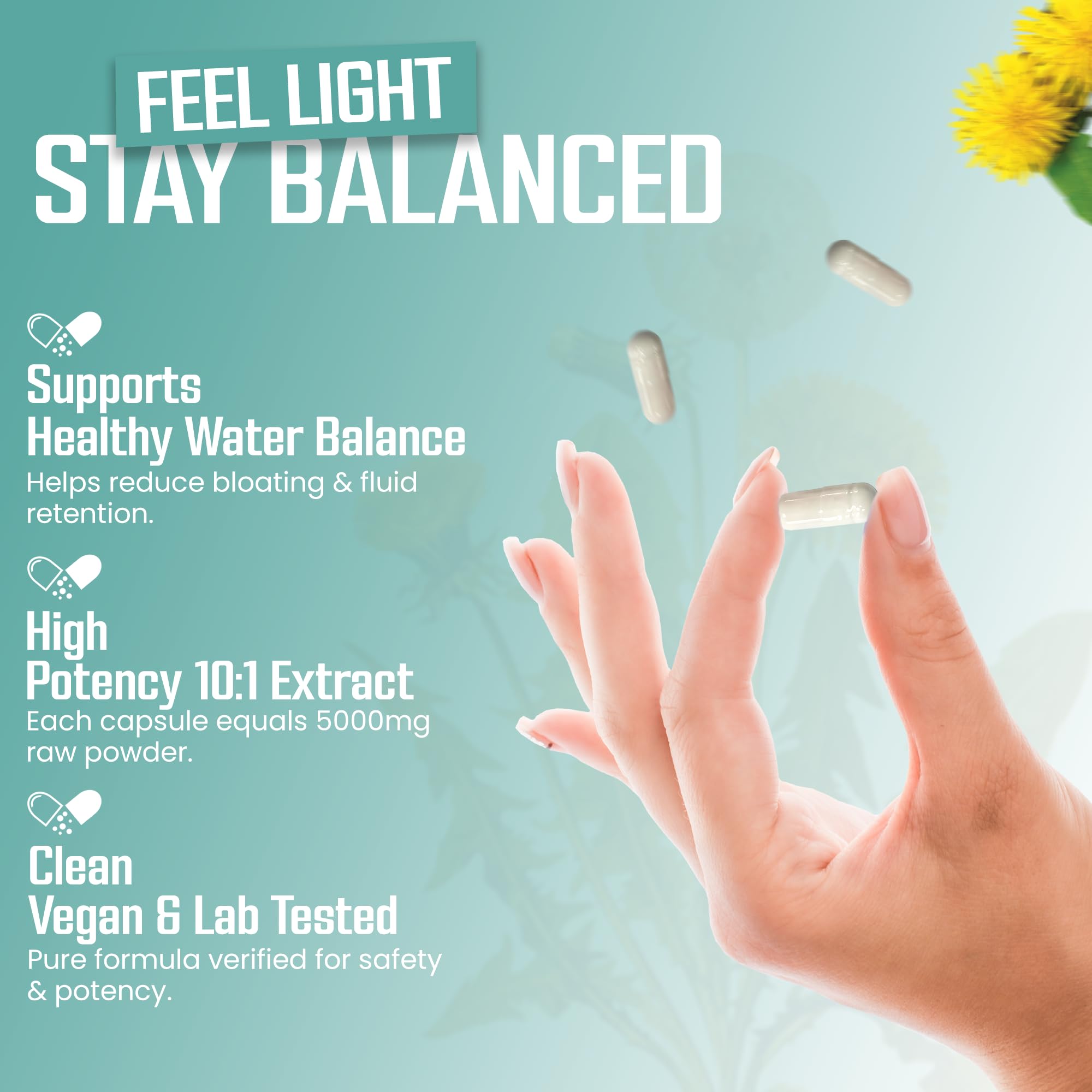 Clean Vegan Formula - Our capsules contain only pure Dandelion Root extract with no artificial ingredients, fillers, binders, or preservatives. This plant-based supplement is perfect for anyone who wants a safe, natural way to support their body's fluid balance and reduce occasional bloating.