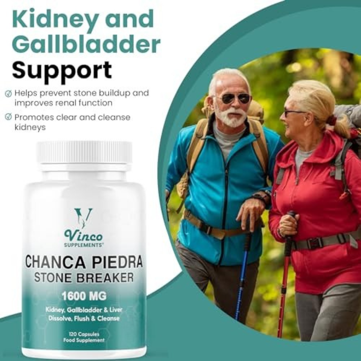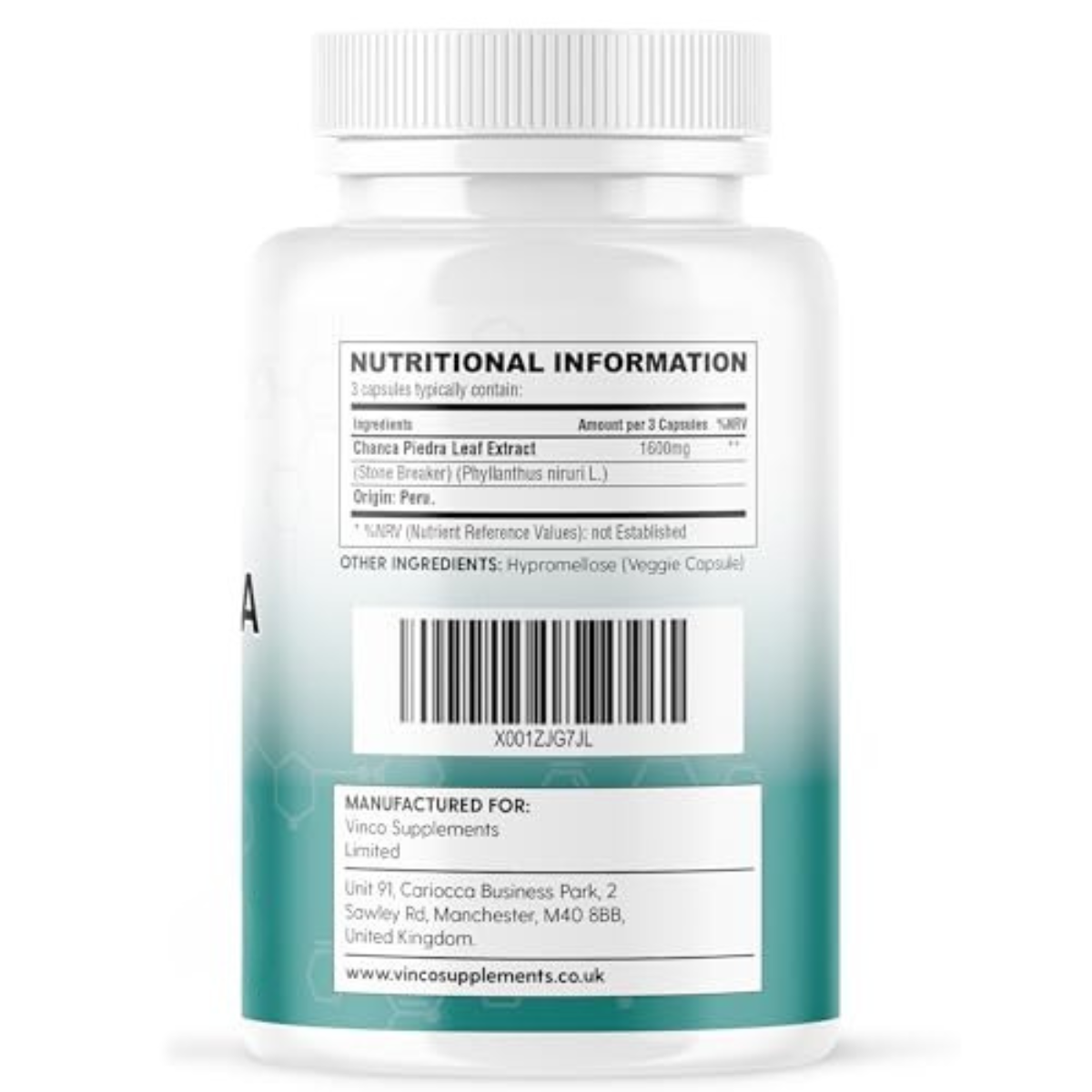 Vinco Chanca Piedra supplements support kidney, liver, and gallbladder health by dissolving kidney stones and flushing toxins. Backed by research showing 97% effectiveness in preventing stones, our 100% vegan, UK-made formula is free from fillers, offering a high-quality, natural solution for overall wellness.